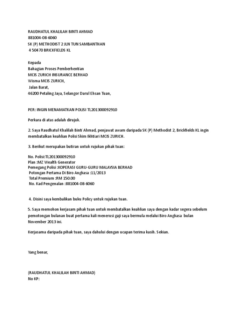 Download Surat Pembatalan Insurans Aia Docshare Tips
